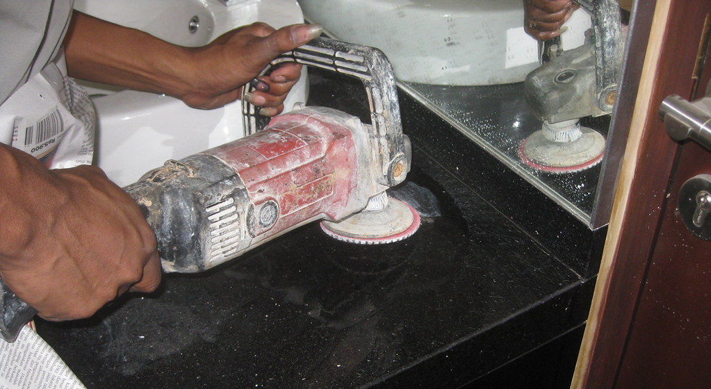 Proses poles meja granit termasuk hal-hal berikut: